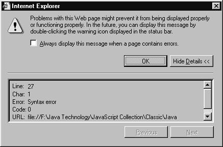Anda tidak akan melihatnya di dalam keadaan Normal. Sila buka dalam keadaan Preview. Anda akan melihat terdapat satu butang " Periksa Browser Anda ". Ia akan memeriksa perisian pelayar Internet yang anda gunakan. Perhatikan bahawa JavaScript ini berfungsi sama ada pada Internet Explorer dan Netscape Navigator. Jika anda memahami cara tag-tag HTML berfungsi yang pernah kita bincangkan di awal tutorial ini dahulu, anda akan lebih mahir jika anda menghadapi JavaScript error.