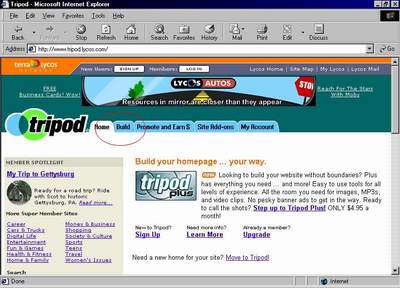 Masuk ke laman web Tripod di http://www.tripod.com. Klik pada Build.