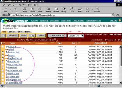 Ok la .. saya mengandaikan anda seperti pengguna biasa lain dan memilih pakej Tripod Free. Sebelum upload, pastikan semua fail yang berkenaan ditempatkan di dalam satu folder/direktori. Saya sudahpun menerangkan tentang perkara ini dalam Pelajaran 1.